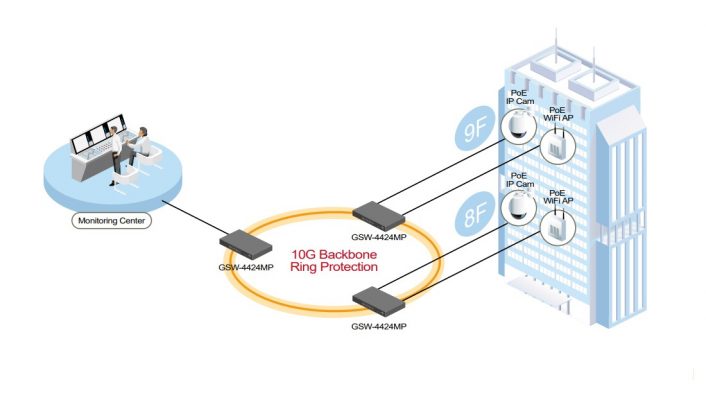 - Phiên bản mật độ cao của bộ chuyển mạch Ethernet được quản lý với tỷ lệ hiệu suất chi phí tốt nhất, GSW-4424MP, được thiết kế cho ứng dụng mạng doanh nghiệp và SMB. Mỗi cổng đồng Ethernet tuân theo tiêu chuẩn IEEE 802.3at để cung cấp công suất phun tối đa 30W. Các cổng đường lên 10G giải phóng sự thiếu hụt liên kết Gigabit để cung cấp mức tiêu thụ băng thông đòi hỏi ngay lập tức cho việc giám sát IPcam FHD / UHD được hỗ trợ PoE, truy cập mạng WiFi và điện thoại VoIP được triển khai trong mạng doanh nghiệp.